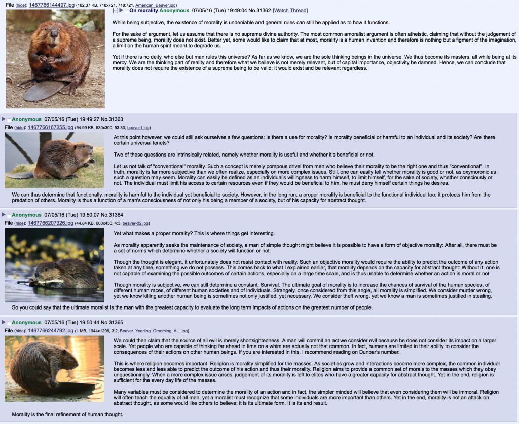 The following essay by Beaver does a great job defining the concept of morality, and explores some of the subsequent implications – Does it benefit the individual to be moral? For what purpose would someone willingly restrict themselves for the sake of other people?