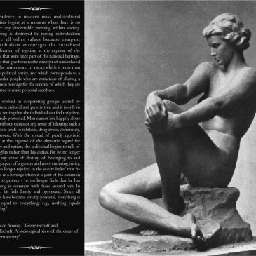 This little passage below, by the french philosopher Alain de Benoist, explains a lot of the ennui and restlessness one can observe in modern society that we frequently assume to be normal. A different way of looking at the effects of individualism on steroids as described in a random anon’s description of “toxic individualism”: Decadence … More Decadence
