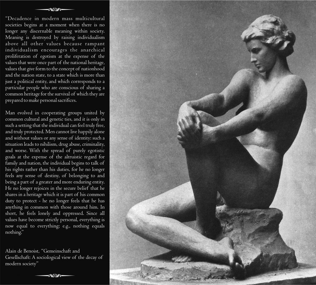 -Alain de Benoist, “Gemeinschaft and Gesellschaft: A sociological view of the decay of modern society”
