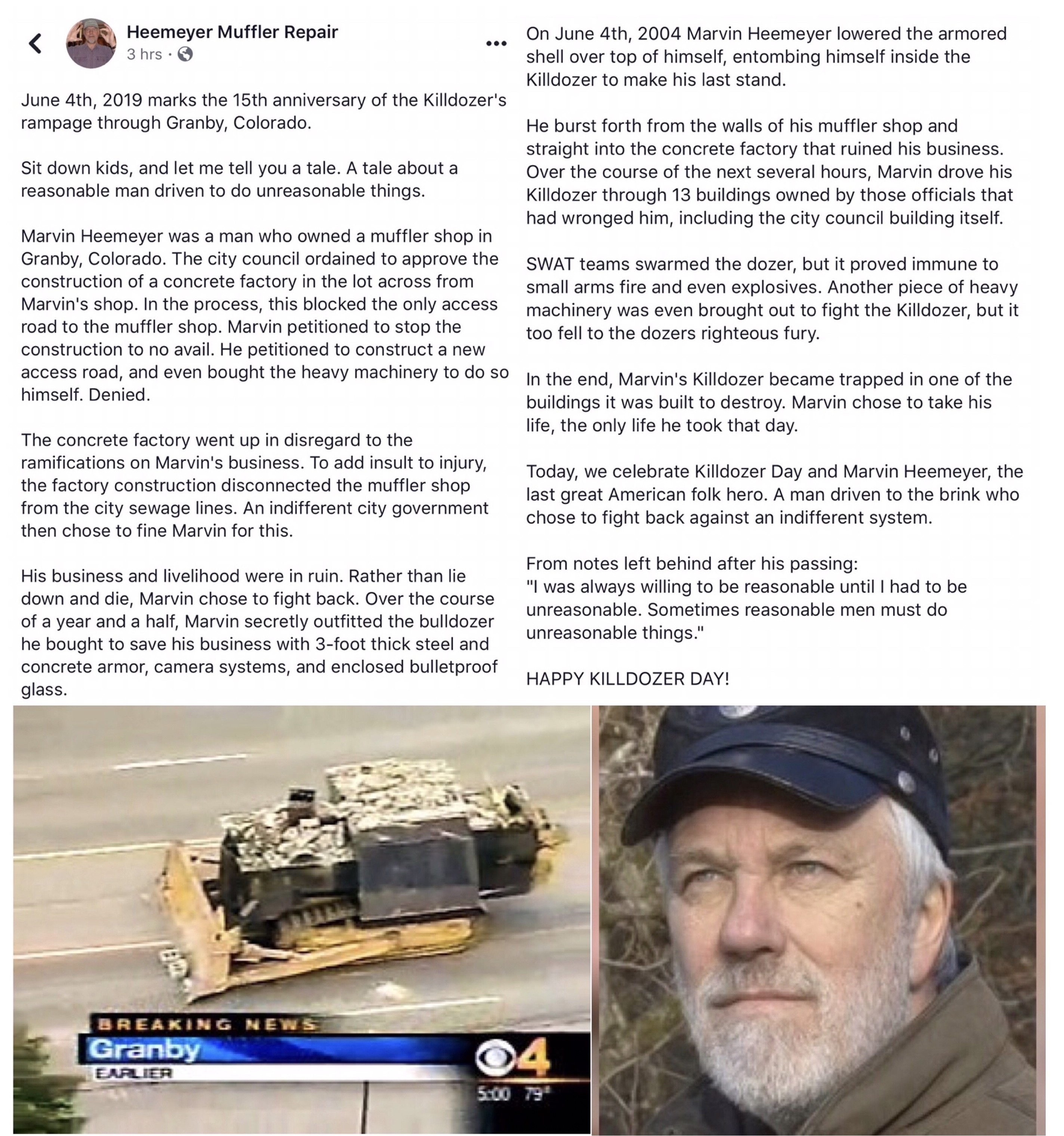 Three days ago, 6/4/21, marks the 17th year anniversary of the Killdozer rampage that occurred in Granby, Colorado.