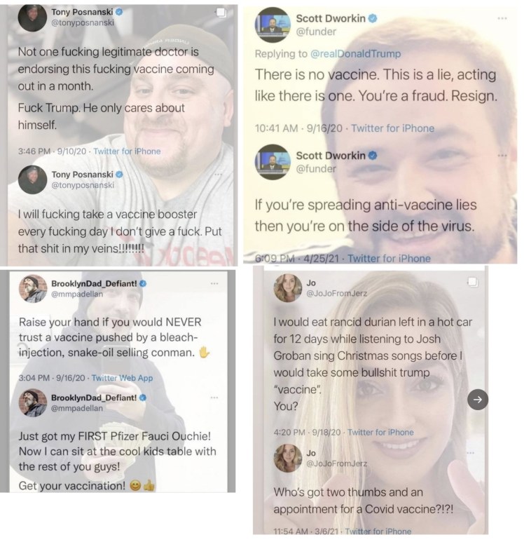 To start with, some of the strange attitude shifts people have undergone when the vaccines went from being a Trump initiative to a Biden initiative: