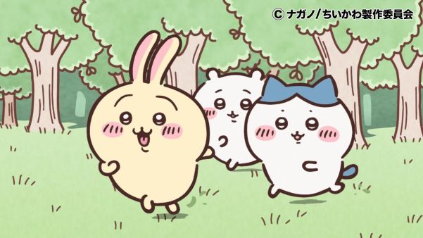 Chiikawa is a recent Japanese slice of life anime/manga featuring cute, blobby animals engaged in various adventures, known for its rather distinct art style.