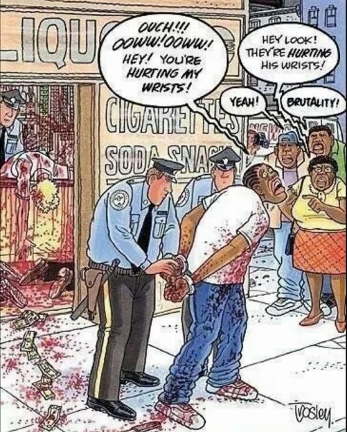 Despite how Frank McCormick’s black students misbehave, the school administration refuses the address the issue, but rather chooses to focus on appearing enlightened and non-racist at the cost of everything else. The same thing is happening outside of academia, as well. The above political comic is fairly well known and gets posted around frequently. When I tried to search for it on google, no matter what keywords I tried, it simply would not show up on their image search.