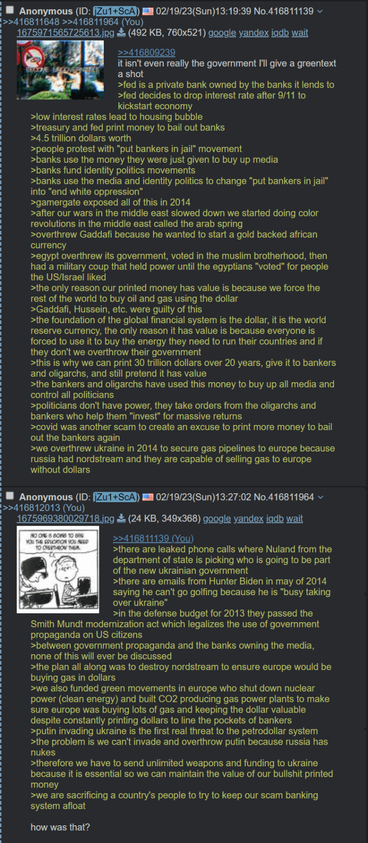An anon on 4chan talks of how he sees the connection between the Ukraine war and the upkeep of the petrodollar system the US runs on. The original text version is very rough to read, here is a more cleaned up essay version for your perusal: