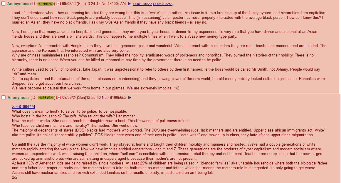 I sort of understand where they are coming from but they are wrong that this is a “white” issue rather, this issue is from a breaking up of the family system and hierarchies from capitalism.