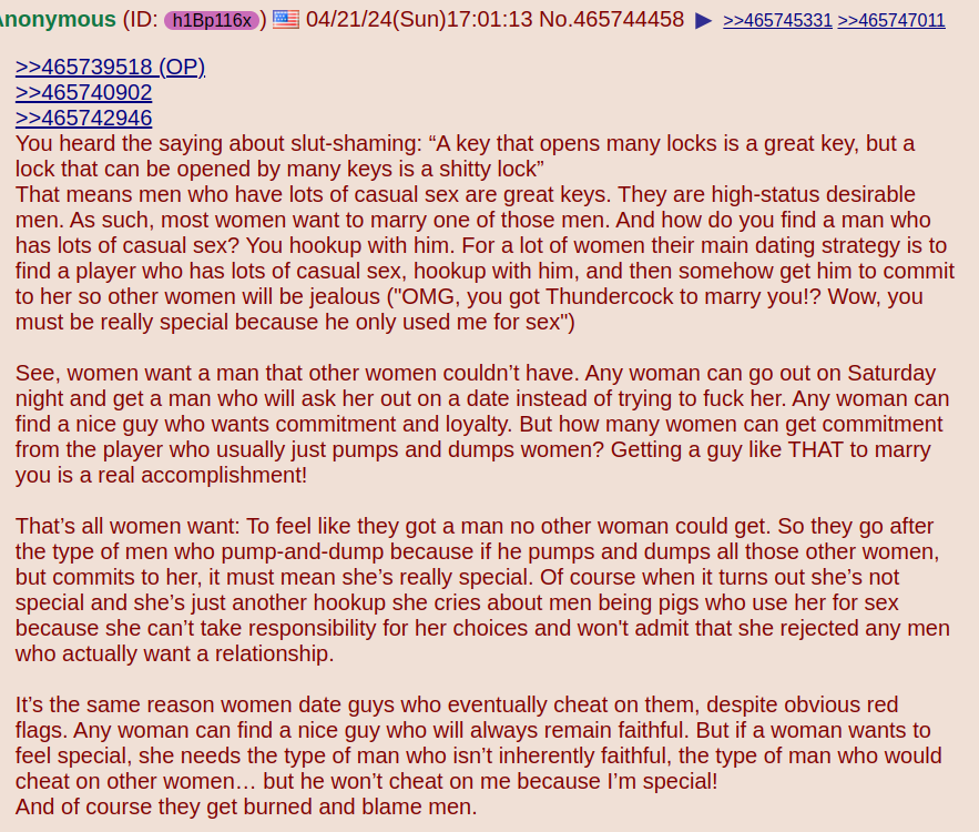 A 4chan anon analyzes why some women appear to specifically prefer bad men: