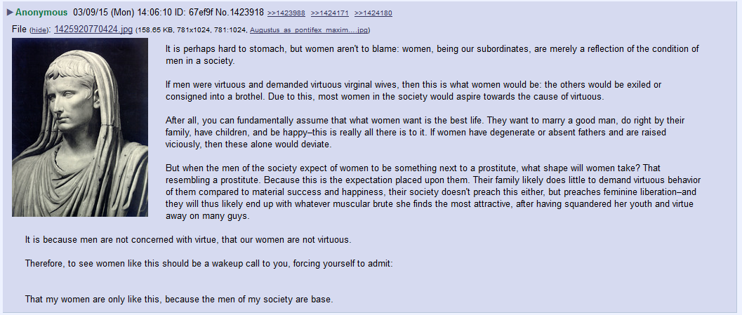 A 4chan anon argues that women aren’t to blame for their undesirable state in western society: